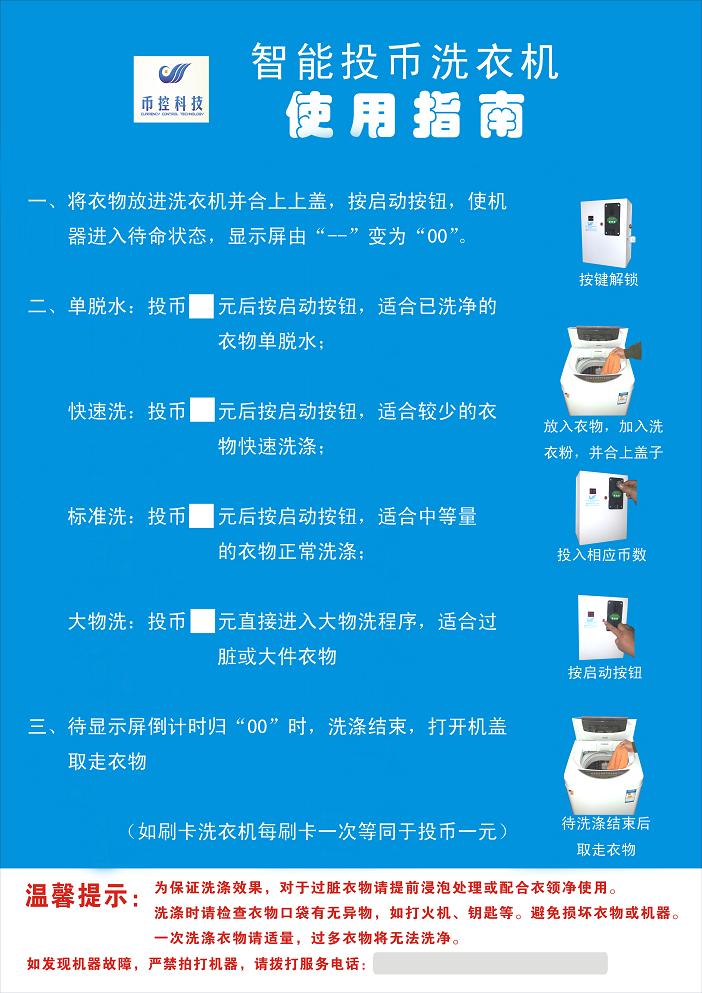 我公司投幣洗衣機使用指南樣本參考圖: