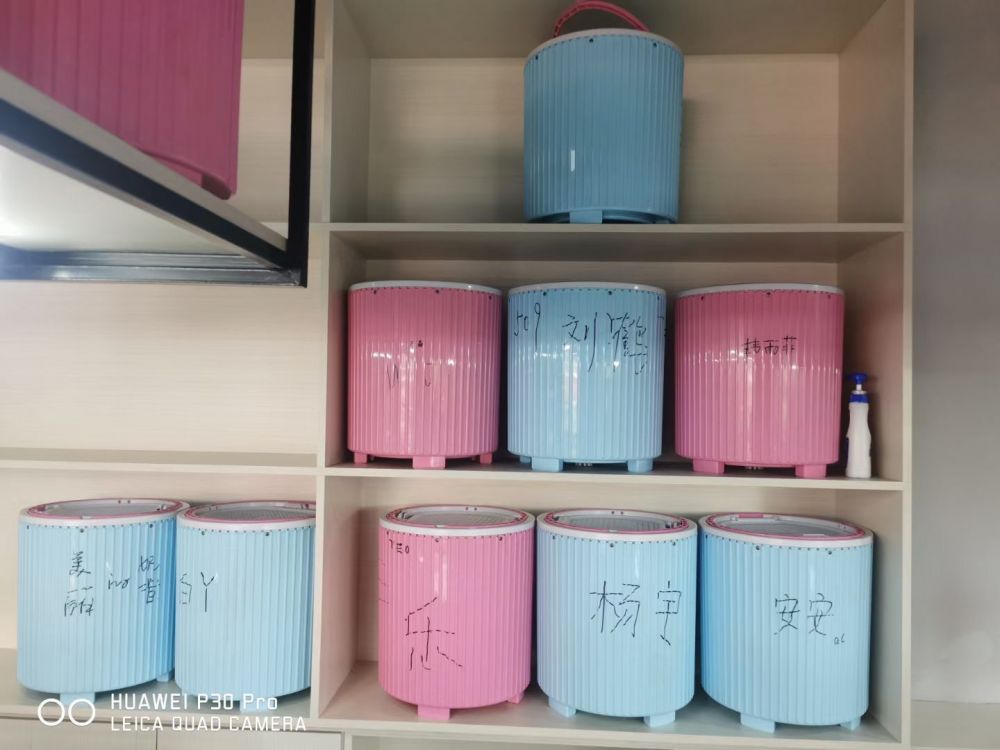 男生洗衣房布局簡(jiǎn)潔、硬朗,頗具工業(yè)風(fēng);而女生則以清新、淡雅的格調(diào)為主。